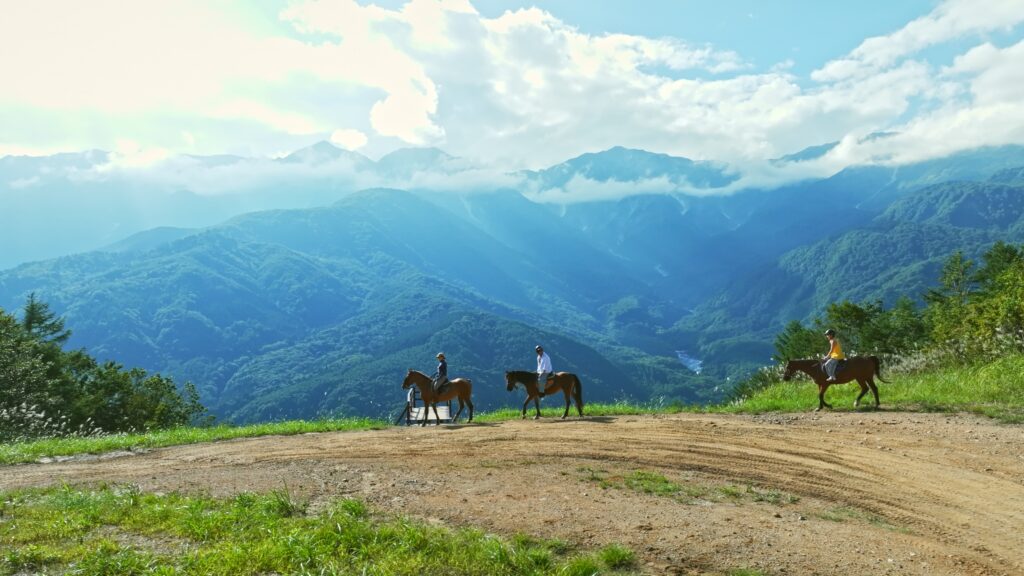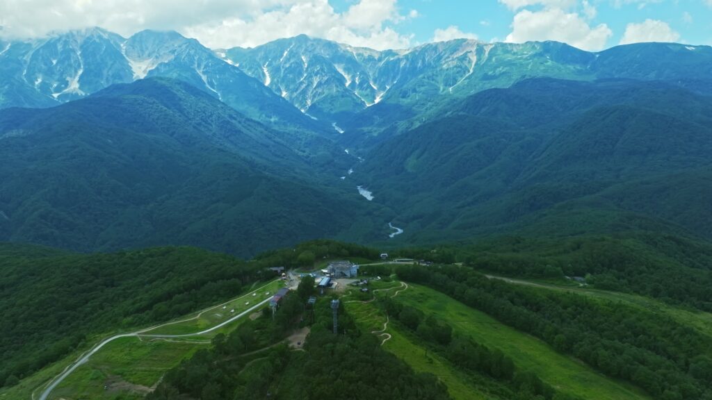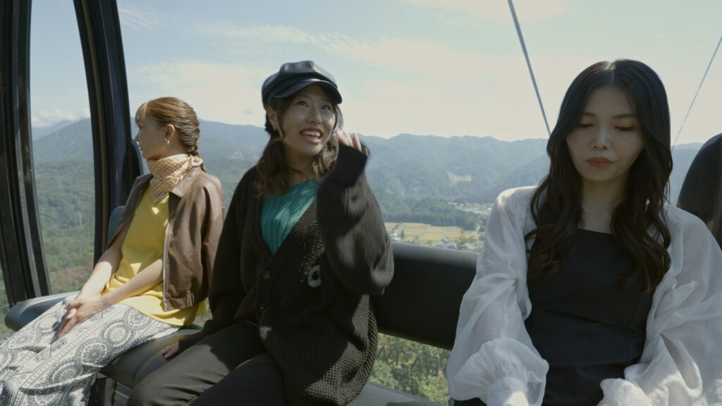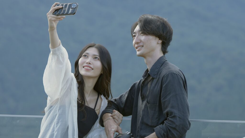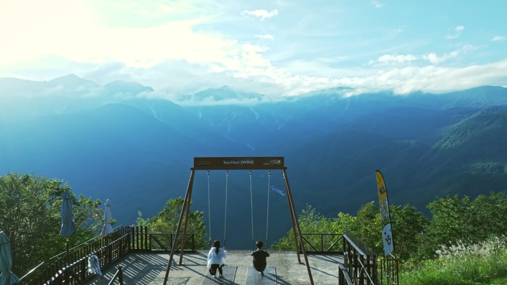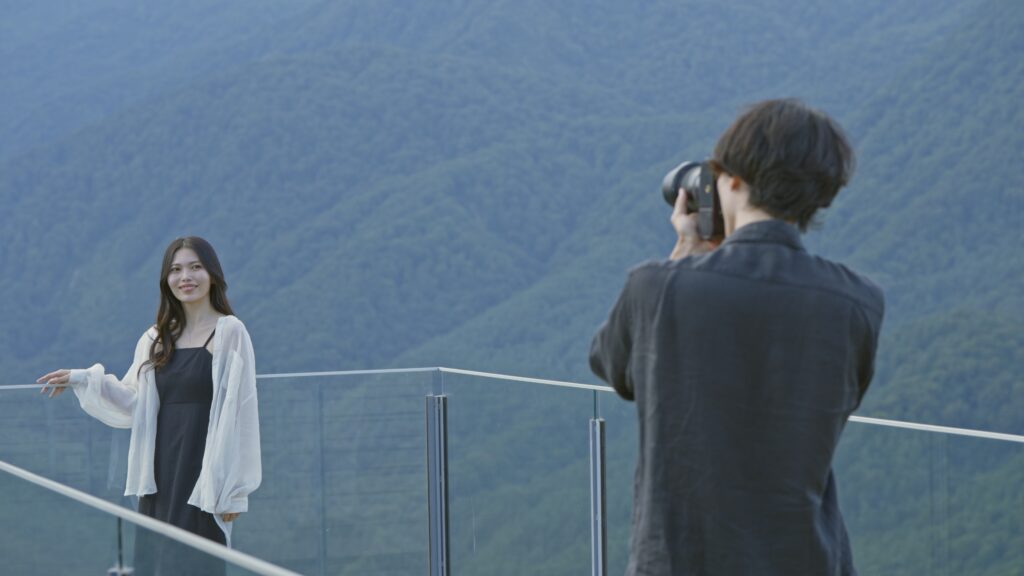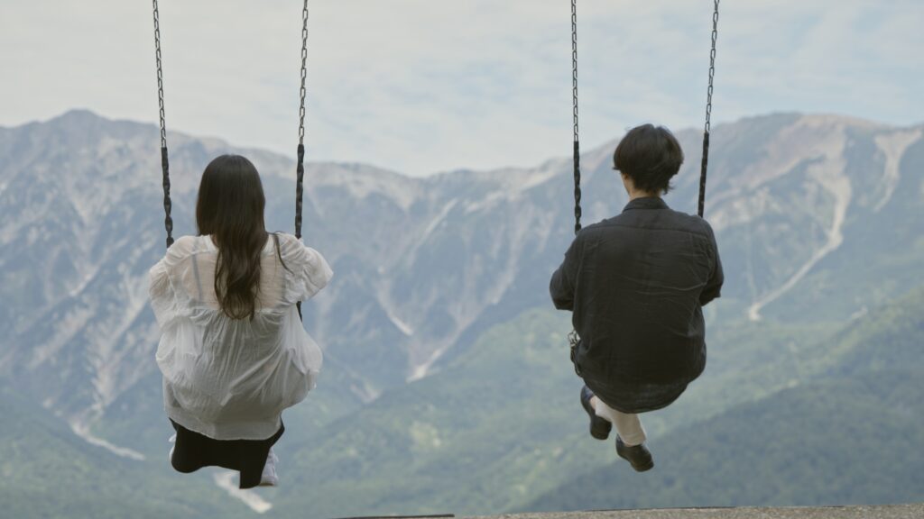 北アルプスを一望する絶景テラス。光哉と楓が並んで座り、景色を眺めながら距離を縮めました。ここで撮影された「二人の写真」が、後のナナミとの関係に大きな波紋を広げます。