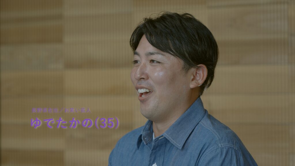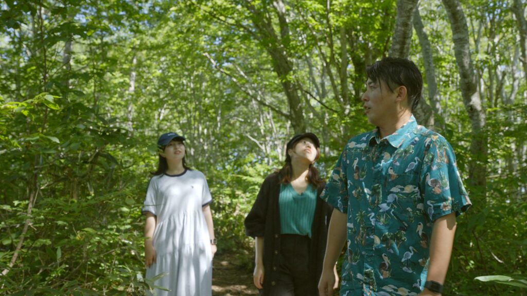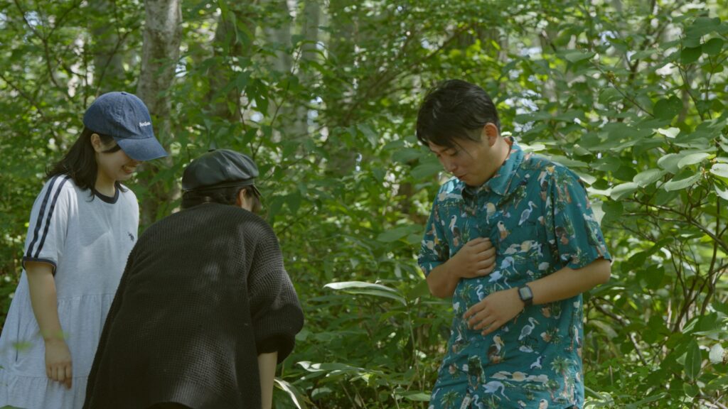 静寂に包まれた森。新メンバーの「ゆでたかの」が心菜の靴紐を気遣うなど、都会とは違う「自然体のやさしさ」が描かれたロケーションです。