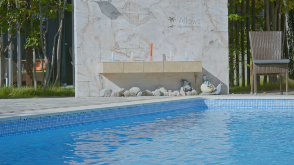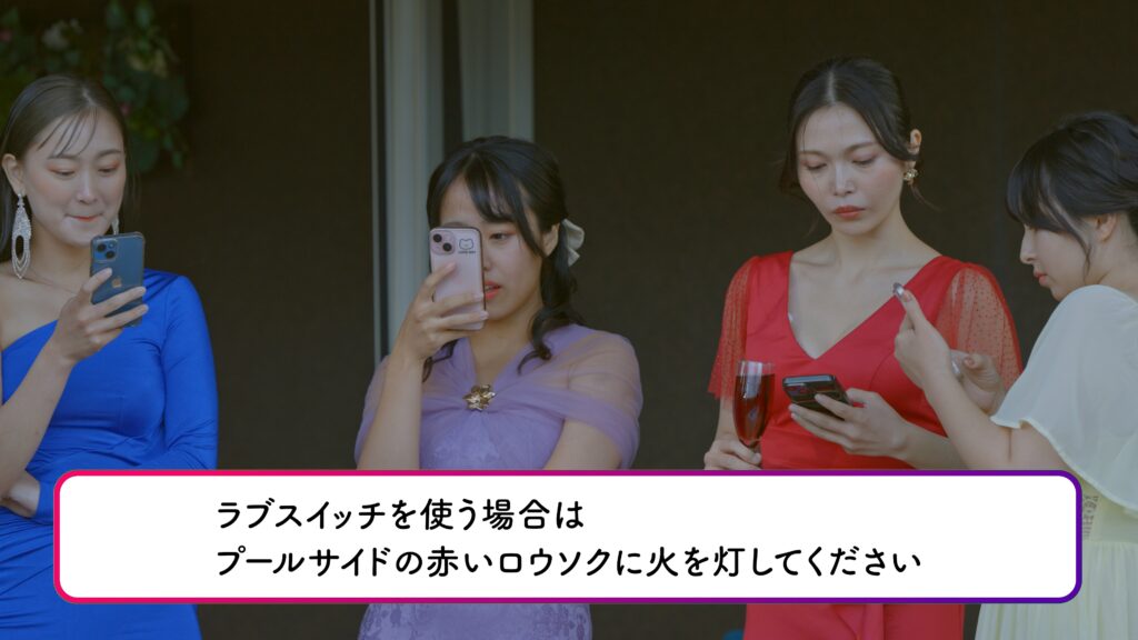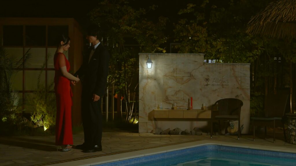 プール付きのラグジュアリーな空間。ドレスアップした出演者たちが、高まる想いをぶつけ合った最重要スポットです。